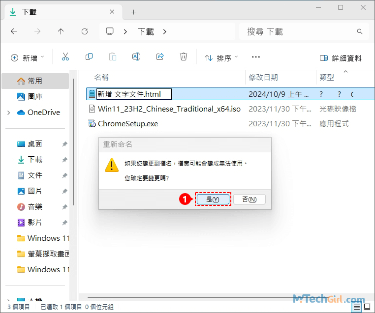 步驟6:這一步是讓您確認如果您變更副檔名,檔案可能會變成無法使用。您確定要變更嗎?點擊[是]選項即可。